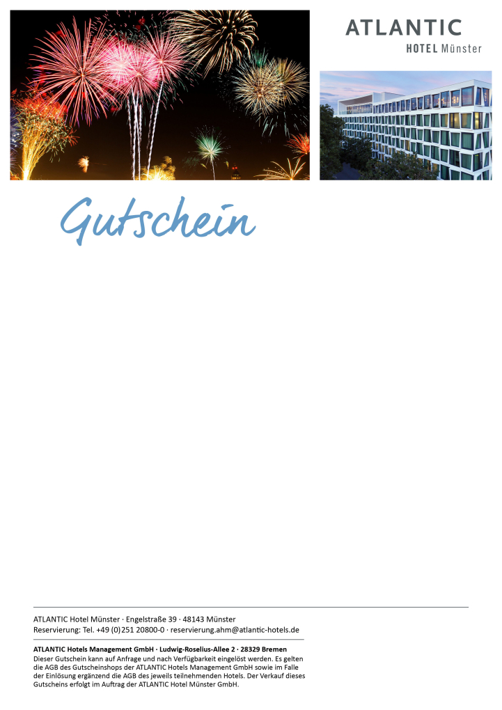 Das Jahr ausklingen lassen mit unserem exklusiven Chefs Choice 5-Gang-Menü im ATLANTIC Grillroom. Der Gutschein beinhaltet: