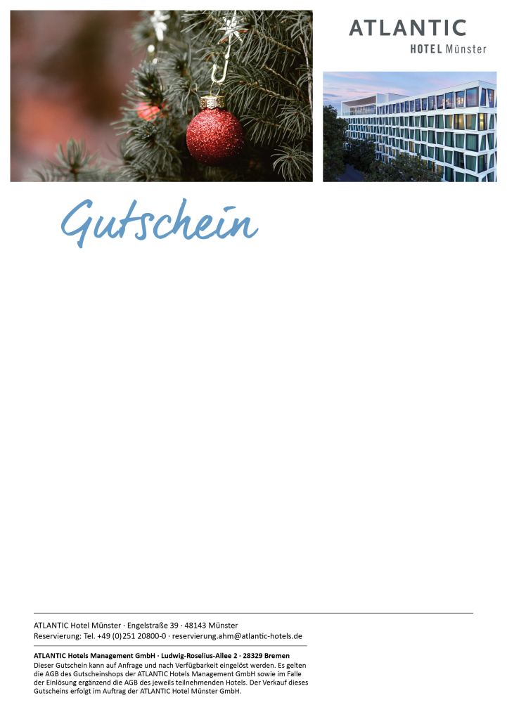 Verbringen Sie den 1. Weihnachtsfeiertag mit Ihren Liebsten bei unserem erstklassigen Feiertagslunch im ATLANTIC Grillroom Münster. Das Ticket beinhaltet: